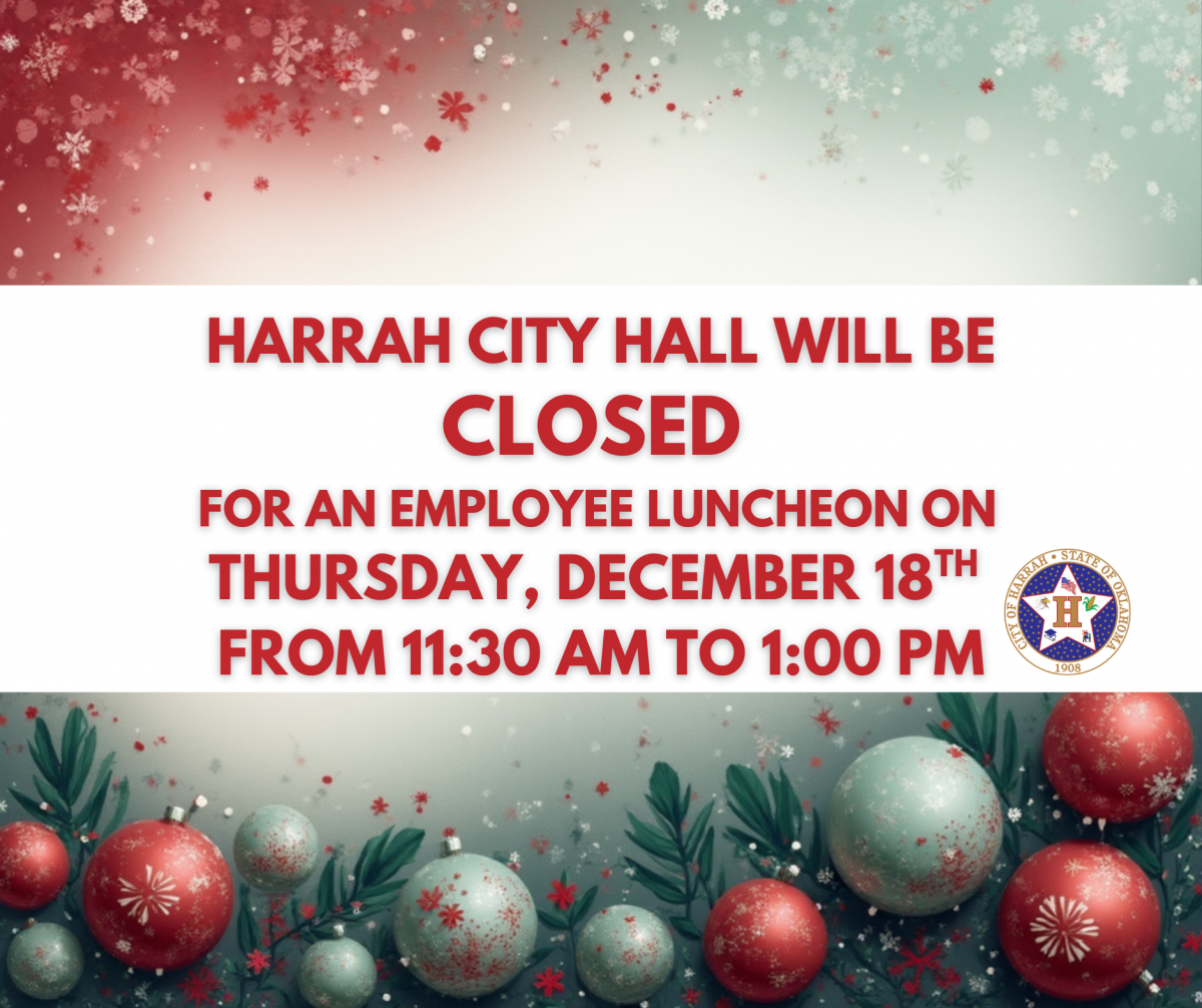 Harrah City Hall will be closing at 1pm on Wednesday and will be closed Thursday and Friday in observance of the Thanksgiving Holiday. Please note, trash collection services will not run on Thursday. If your regular trash collection day is Thursday then it will be picked up on Friday instead this week. We hope everyone enjoys a safe and restful …